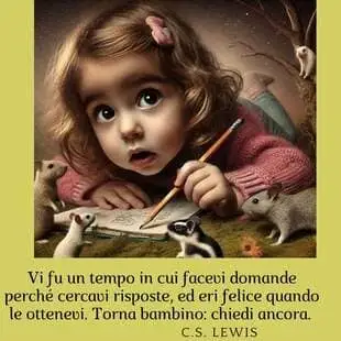“Vi fu un tempo in cui facevi domande perché cercavi risposte, ed eri felice quando le ottenevi. Torna bambino: chiedi ancora”. C.S. Lewis.