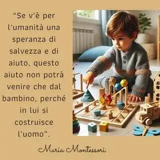 “Se v’è per l’umanità una speranza di salvezza e di aiuto, questo aiuto non potrà venire che dal bambino, perché in lui si costruisce l’uomo”. Maria Montessori.