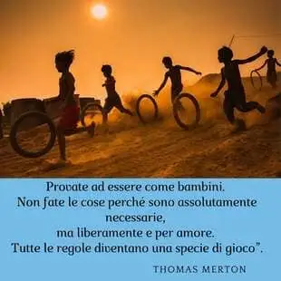 “Provate ad essere come bambini. Non fate le cose perché sono assolutamente necessarie, ma liberamente e per amore. Tutte le regole diventano una specie di gioco”. Thomas Merton.
